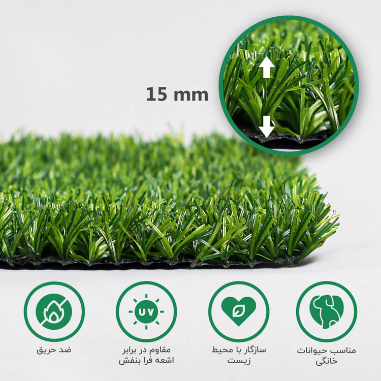 ارتفاع 15 میلیمتری چمن مصنوعی آوانا، به عنوان یک کفپوش سبز با جلوه ای طبیعی به بازار عرضه میشود. این نوع چمن، با ارتفاع کمتر خود، به مالکان فضاها اجازه میدهد تا همچنان از یک پوشش سبز و زیبا برخوردار باشند، اما با هزینه کمتری.
